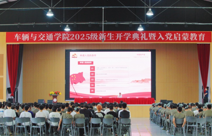 9月18日上午,车辆与交通学院2025级新生开学典礼在风雨球场隆重举行。学院院长李军、党总支书记李云杨、副院长王艺云等领导出席典礼,教